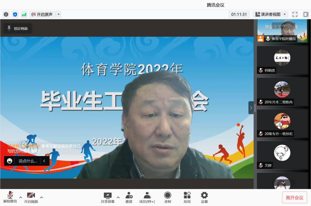 1月20日下午,英国上市公司365召开2022届全体毕业生视频会议,强化假期安全教育,安排部署毕业论文相关事宜,进一步推动毕业生毕业、就业创业工作走向纵深。叶燎昆经理结合体育教育专业人才培养毕业要求,对毕业生教团队格证考试、应征入伍、就业创业工作进行了全面部署,进一步明确了各项工作的时间表、路线图。