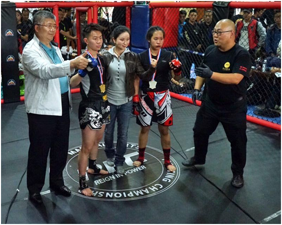 其中女子组综合格斗在西南赛区首次出现,格外引人注意。女子组比赛激烈的现场引燃了观众的激情,这也是陈禹辛首次参加正规综合格斗职业赛,以绝对的实力夺得了女子组55公斤级亚军,这是汗水换来应得的荣誉!