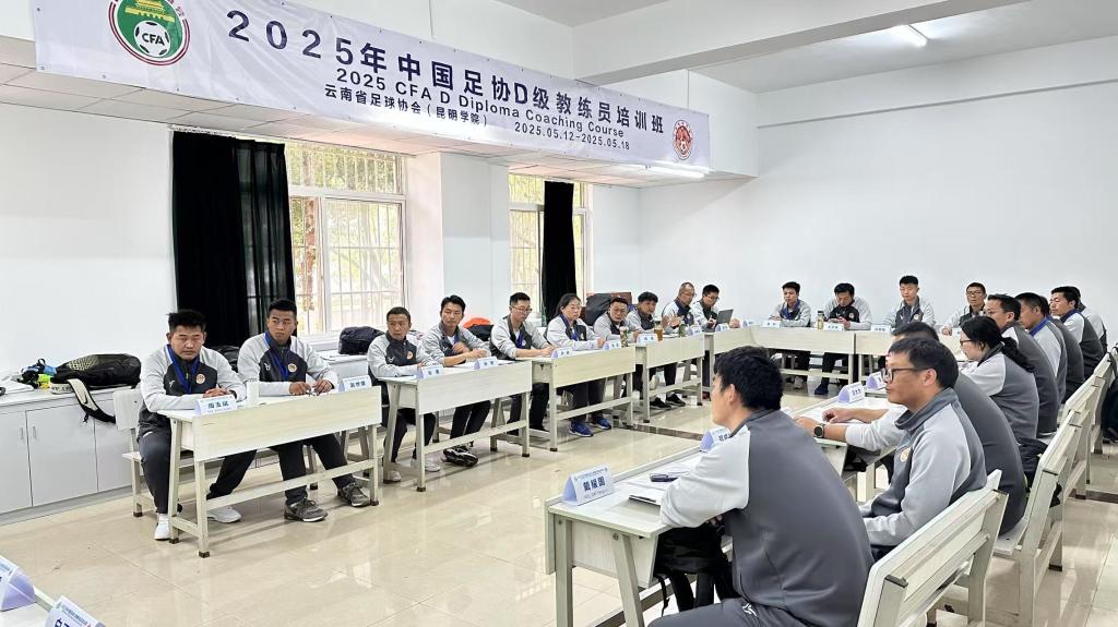 云南省全国青少年校园足球教师省级专项培训共分5期进行,吸引了来自昆明市各区县的中小学体育教师共100名学员参与。第一期培训时间为2025512日至2025518日,为期7天,共有昆明市各区县的中小学体育教师20人参加。学员需通过严格的理论考核、模拟课堂与实践评估可获得结业证书,通过相应考试可获得中国足协D级教练员资格证书。