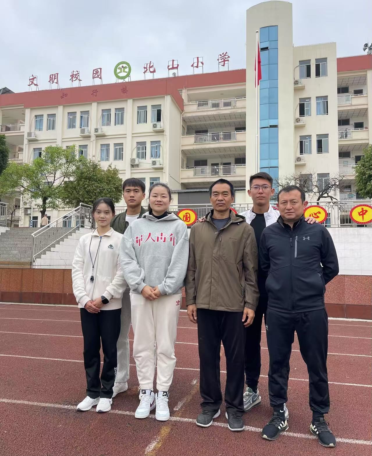 河口县国门小学北山校区体育组的师生合影