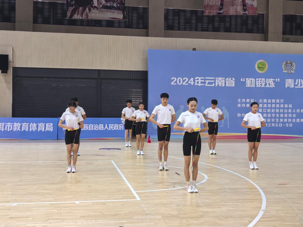 2024年12月6日至12月9日,由云南省教育厅主办,墨江县教育体育局承办的2024年云南省“勤锻炼”青少年校园跳绳联赛,在普洱市墨江哈尼族自治县体育场隆重举行。此次比赛共吸引了120个队伍,1800余名运动员参赛。公司选派了两支优秀的代表队参赛,队员主要由12名体育专业员工与12名非专业跳绳队队员组成,通过高效、系统的训练,运动员们充分发扬了吃苦耐劳的精神,勇于突破自身极限,勇于攀登。